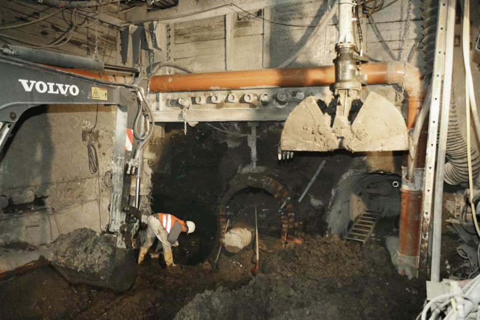 Auch hier arbeiteten wir in historischem Kölner Grund und so war es nicht verwunderlich, dass die Mineure gemeinsam mit den Archäologen einen bedeutenden Fund machten: einen 100 m langen Tunnel der "cloaca maxima“ – einen Abwasserkanal aus römischer Zeit. Es handelt sich um den ersten komplett erhaltenen Rheinauslass-Kanal aus der Römerzeit, der in Köln freigelegt wurde. Für die Tiefbaustelle bedeutete diese bedeutende Entdeckung allerdings einen längeren Stillstand.